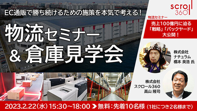 株式会社スクロール360(本社:静岡県浜松市中区、取締役社長 西田 耕三)は、2023年2月22日(水)に「物流セミナー&倉庫見学会」を大阪で開催いたします。