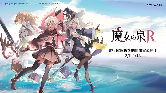 『魔女の泉R』はKIWIWALKSが自社で企画及び開発を一から手掛けたはじめてのPCゲームです。体験版が遊べる期間は2023年2月1日から2月13日までとなります。