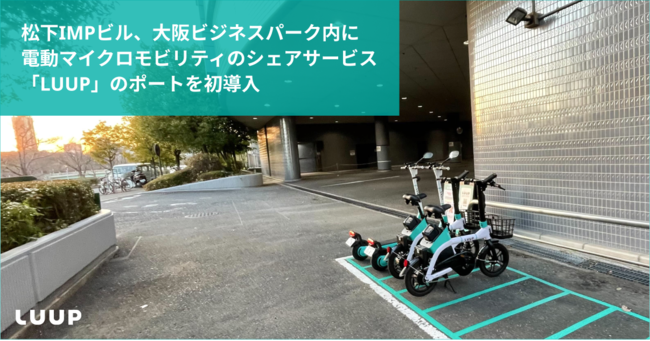 株式会社Luup(本社:東京都千代田区、代表取締役社長兼CEO:岡井大輝、以下「Luup」)は、松下IMPビル(所在地:大阪府大阪市中央区城見1丁目3-7、運営管理:関電プロパティーズ株式会社)に、電動マイクロモビリティのシェアリングサービス「LUUP」のポートを設置したことをお知らせします。なお、大阪ビジネスパーク(OBP)内にLUUPのポートが設置されたのは今回が初となります。