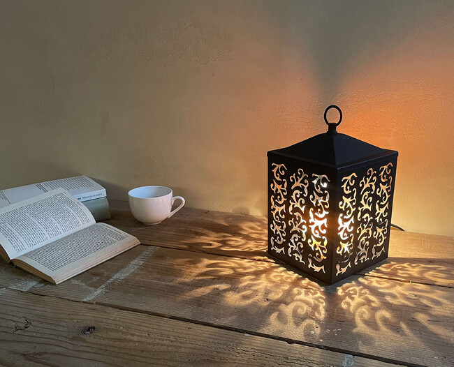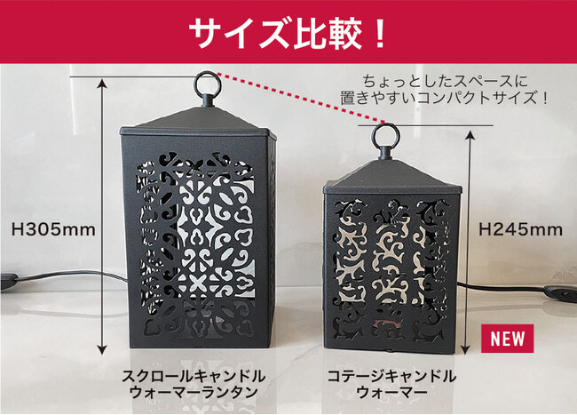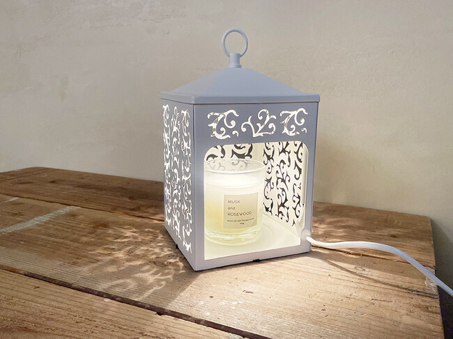 従来品のスクロールキャンドルウォーマーランタンよりもコンパクトになった、香りと陰影が楽しめるランタン。