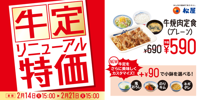 【松屋】各メニューが1週間限定で100円お得!「“お試し価格”選べる牛焼肉定食」 発売