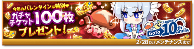スマホ向け本格オンラインRPG『剣と魔法のログレス いにしえの女神』<今年のバレンタインは特別ログインでガチャチケ100枚プレゼント!>