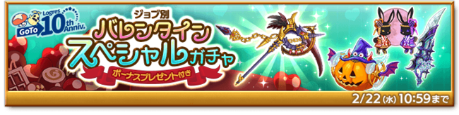 人気武器と定番ガチャでは手に入らない期間限定武器が確率アップした、GoTo10周年&バレンタイン記念の特別なガチャをお見逃しなく!