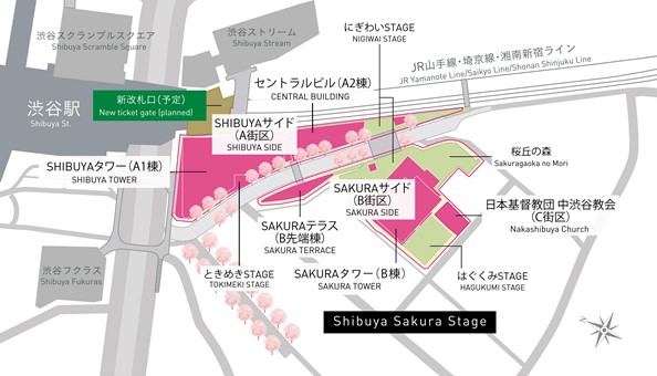 施設名称には、これから生まれ変わる桜丘のまちが、桜を愛して皆で楽しむ日本人の心を大事にしたいという想いと、さまざまな個性が集う渋谷で、働く人・遊ぶ人・住む人、すべての人が主役となり、自らのものがたりを発見・発信する舞台でありたいという想いを込め「Shibuya Sakura Stage」に決定しました。