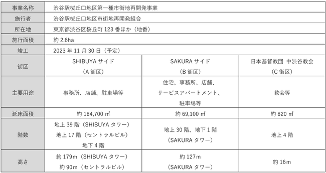 本施設は、「働・遊・住」を兼ね備えた大規模複合施設で、様々な規模の企業がフレキシブルに入居することが可能なオフィスや、最先端のトレンドやカルチャーを創出・情報発信する商業施設に加え、渋谷駅中心地区で唯一、住宅を整備します。また、外国人ビジネスパーソン等に対応したサービスアパートメント、子育て支援施設、国際医療施設や、新たなビジネスの創出の場となる起業支援施設を導入します。