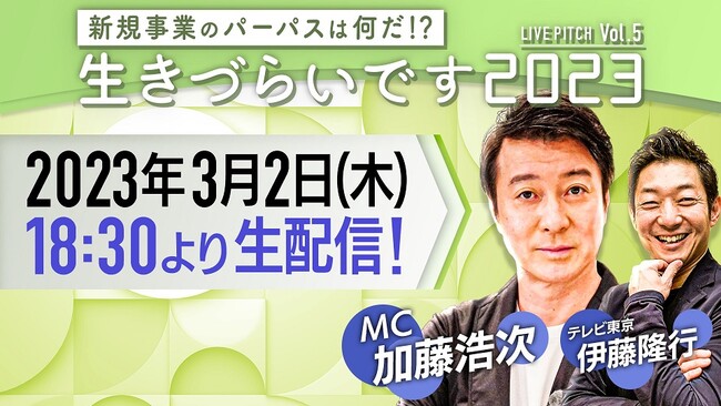 『新規事業のパーパスはなんだ!?「生きづらいです 2023」 LIVE PITCH』 3月2日(木)生配信!