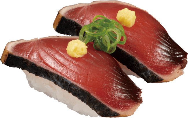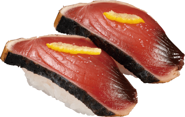 ※『国産炭焼きかつおたたき』『柚子塩 国産炭焼きかつおたたき』は一皿二貫、そのほかの商品は一皿一貫100円(税込110円)