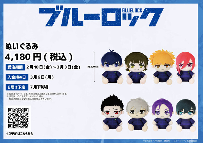 TVアニメ『ブルーロック』から、8人のキャラクターのぬいぐるみが登場です。