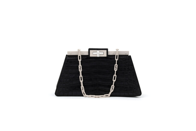 ウィメンズコレクションからは、2023年春夏コレクションで発表されたアイコンバッグの進化版「ピーカブー カット(Peekaboo Cut)」のラグジュアリーなクロコダイルレザーが登場。クラシカルな台形の「ピーカブー」を、まるで水平にカットしたかのように、通常内蔵されるシグネチャーのバーが露わになり、そのフォルムがよりシャープになりました。ラグジュアリーなマットブラックのクロコダイルにコントラストをきかせたバイカラーの「オーロック(O’Lock)」チェーンストラップが、モダンなタッチを加えています。フェンディのシグネチャー「FENDI ROMA(フェンディ ローマ)」ロゴのリボンで飾られたスマートフォンカバーは、ベーシックなブラックやダブグレーに加え、今シーズンを象徴するポップな ピンクやグリーン、ソフトベリーの5色を展開いたします。さらにデンマーク発のe-BIKEブランド「MATE.BIKE」と協業し、ニュートラルカラーの「FF」ロゴとトーンオントーンのパーツがシックな特別モデルを、世界に先駆け本旗艦店のみで受注を開始いたします。