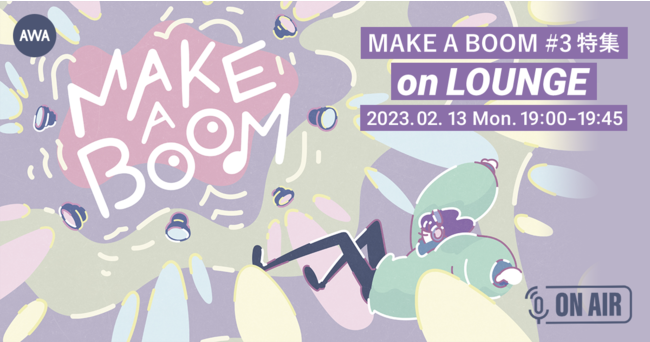 今回のAWAラウンジは、主要音楽ストリーミングサービス12社で聴くことができる必聴プレイリスト「BOOM BOOM BOOM」と連動したライブイベント『MAKE A BOOM #3 -sprout-』の開催を記念して実施されるもので、当ライブイベントに出演するアメノイロ。・オレンジスパイニクラブ・koboreの3組の楽曲を一挙オンエアいたします。さらに、今回のAWAラウンジには出演アーティストの中からkobore田中そら(Ba)、アメノイロ。安田拓生(Ba)、そしてレギュラー番組『BOOM BOOM BOOM ch.』で番組VJを務める小関裕太とほしのディスコがリアルタイムに音声とチャットで参加。出演アーティストの楽曲へのコメントやライブイベントの見どころについてのトークを予定しています。ラウンジは、どなたでも参加することができ、AWAアプリを事前にダウンロードしていれば、リクエストやアーティストとの交流など、よりお楽しみいただけます。ぜひ、AWAラウンジをお楽しみください。