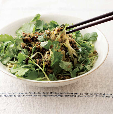 パクチー担担麺も歓声が上がる人気メニュー。肉味噌は常備菜として事前に作っておけば、あっという間に完成します。パクチーが入った料理は、お店で食べると「追いパクチーしたいな」と物足りないこともしばしばですが、おうちで作れば好きなだけどっさり入れられます。