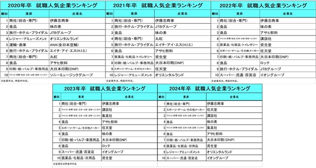 (5)2020年卒~2024年卒は、伊藤忠商事が5年連続で首位を独占