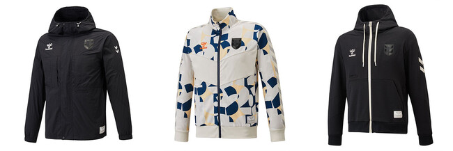 ヘリテージとトレンドをミックスした「hummel PLAY(ヒュンメルプレイ)」とのコラボアイテムは、動きやすく、快適な着心地のスウェットやトラックジャケット、持ち運びに便利なパッカブル仕様のレジャージャケットなど、スポーツシーンはもちろん、デイリーやレジャーなど、幅広いシーンで活躍するアイテム。100周年デザインのトラックジャケットは、AWAYゲームで着用する2ndアンセムジャケット。