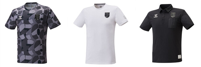 夏の移動時に選手も着用予定のポロシャツやシンプルなTシャツ。ワントーンのポロ&Tシャツは、ストレッチ性と程良い張り感が特徴の天竺素材を採用。グラフィックシャツは、ヒュンメル100周年を表す1923と2023の2つの数字をデザインした記念アイテム。