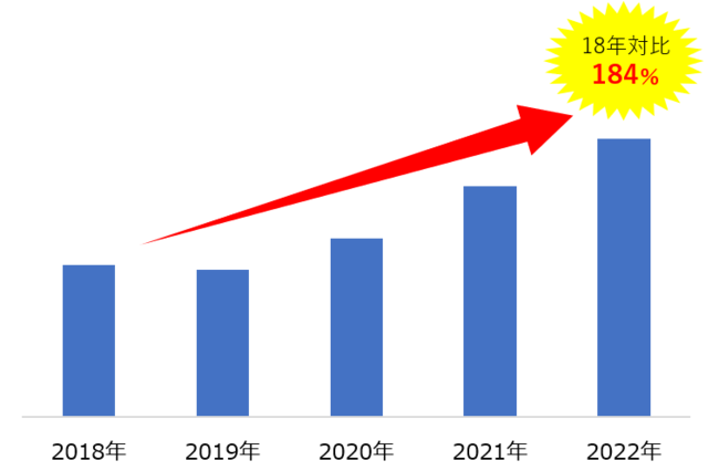 可愛らしい缶パッケージ商品や、多くの方とシェアできるボリューム商品、個包装商品など幅広いラインナップがヒット。さらに昨年度は、満開のさくらをイメージした春の訪れを感じさせる商品の人気が高まり、2022年の売上は18年対比で184%となりました。※企画開始の2018年からの売上推移