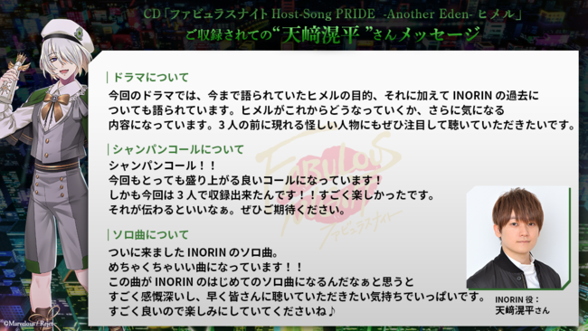 「ファビュラスナイト Host-Song PRIDE -Another Eden-ヒメル」がリリース!!
