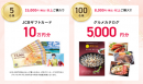 キャンペーン期間内、累計ご購入金額に応じて、抽選でギフトカードなどが当たります