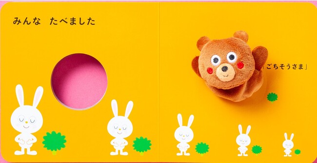 読み聞かせをしようとしても、絵本をかじったり、ひっぱったりして、まだ絵本を読めないというあかちゃんもたくさんいるでしょう。かわいいくまの指人形は、そんなあかちゃんの目も絵本へと引きつけます。