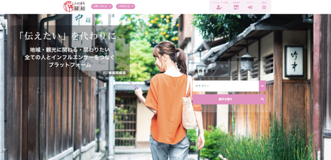 株式会社カスタメディア(本社:兵庫県神戸市 代表取締役:宮崎 耕史)は、地域・観光に関わる・関わりたいすべての人とインフルエンサーをつなぐマッチングプラットフォーム『たび・まち 縁結(むすび))』を「カスタメディアMASE」をベースに構築しました。