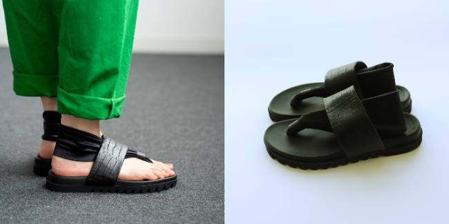 【NEW】靴デザイナーの理想で仕上げた 職人本革のトングシューズ〈クロコ型押し柄・ブラック〉