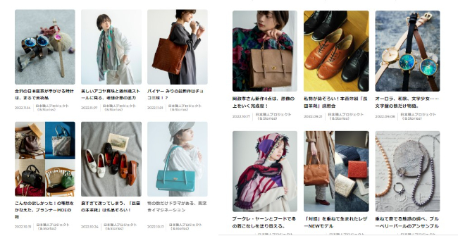 未来に残すべき日本のモノづくりを応援する取り組み「日本職人プロジェクト」は、2004年から活動を開始。このプロジェクトでは、パーソナルな記憶や憧れを原点に、そこからモノづくりを立ち上げていくことを特徴としてきました。そして2023年から、よりモノが生まれるまでの物語“STORY”を伝えることに重点を置いたブランド「&Stories / アンドストーリーズ」として再スタート。「物」がひとりでに語りだす、そんなモノづくりをしたいと考え、日本各地のご縁のある方々と一緒に企画しています。他愛のない会話や立ち話、何気ない雑談の中で、ふと誰かの熱い想いに触れたとき、その想いをカタチにしたい!と強く感じることが、プロジェクトの原動力。現在は主力の鞄・財布・靴に加え、時計・織物・ガラス製品なども含めたオリジナルアイテムを年4回発表しています。