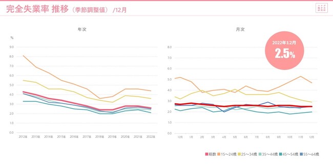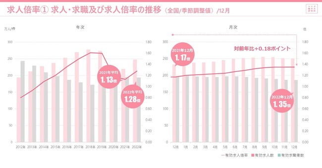 2022年12月度の有効求人倍率は1.35倍。完全失業率は2.5%