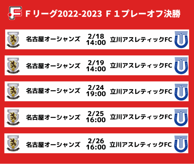 2月18日(土)、19日(日)にFリーグ2022-2023 ディビジョン1 プレーオフ決勝 第1戦、第2戦の2試合を開催いたします。