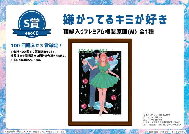 今回の目玉となるS賞には、額縁入りプレミアム複製原画が登場! 210×297mmの額縁に入ったフルカラー複製原画は、鬼山瑞樹先生の描き下ろしイラストを使用しています。