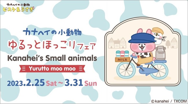 株式会社テレビ東京コミュニケーションズ(本社:東京都港区、代表取締役社長:佐々木宣幸)は、2月25日(土)~3月31日(金)までキデイランド、ロフト、ヴィレッジヴァンガード、テレ東本舗。、FEWMANY、ゆるっと書店、ヤマシロヤ、カナヘイの小動物公式ECサイト「ゆるっとストア」で、『ゆるっとほっこりフェア~カナヘイの小動物 ゆるっとモーモー~』を開催します。