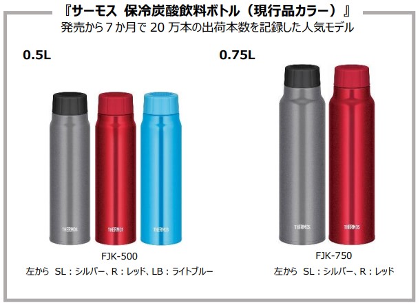 『サーモス 保冷炭酸飲料ボトル(FJKシリーズ)』は、2022年3月に発売。こちらのシリーズは当初の販売計画の2倍以上の出荷本数で、7か月で20万本以上(※1)を販売しました。