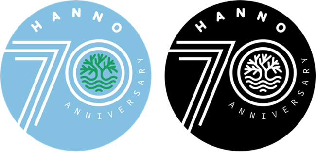 飯能市を象徴する「水」と「緑」のモチーフと、川の流れや波紋をイメージした「70」とを組み合わせ