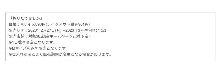 98店舗限定販売 ”みかんの大トロ”せとかを使った『搾りたてせとか』