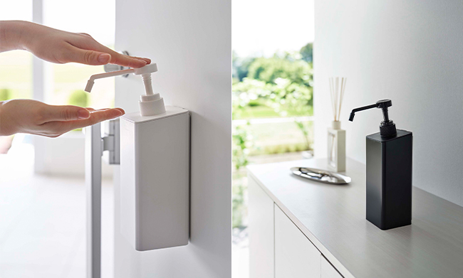 玄関のドアやマグネットが取り付け可能な壁面に設置し、そのままポンプを押してスプレーを出すことが出来ます。