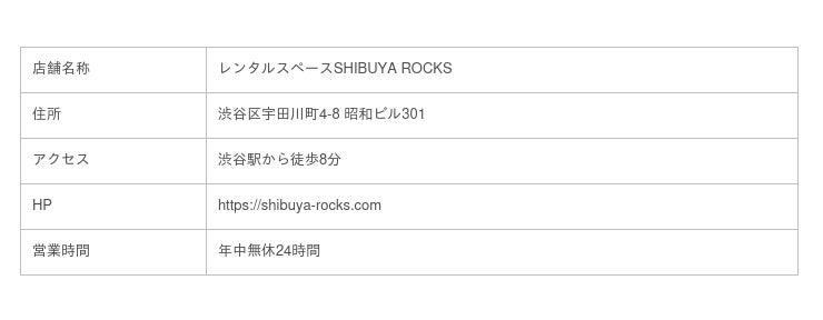 レンタルスペースSHIBUYA ROCKS302も同ビルで営業中