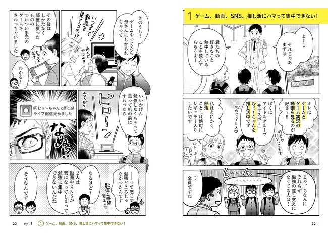 親が勉強についての本を子どもに渡しても、長い文章を読むことに拒否反応を示す子もいるでしょう。けれど、1冊のうちのほとんどがマンガで、その中で勉強方法が解説されていればスラスラと読みすすめられます。
