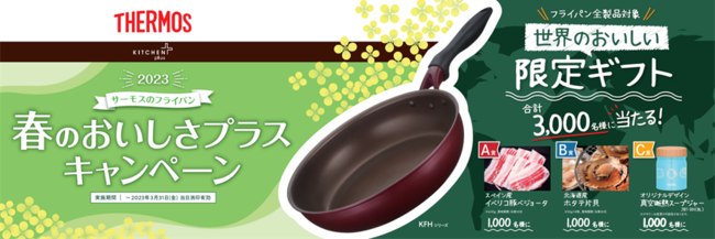 魔法びんのグローバル企業として、人と社会に快適で環境にもやさしいライフスタイルを提案するサーモス株式会社(本社:東京都港区 社長:片岡有二)は、毎年ご好評をいただいている『サーモスのフライパン 春のおいしさプラスキャンペーン』[応募期間3月31日(金)まで ※当日消印有効]を全国の販売店で実施中です。