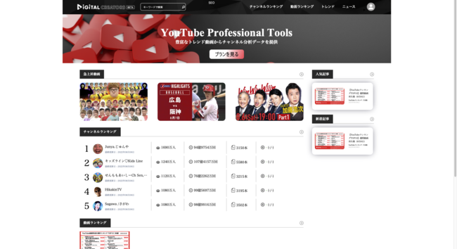 【Digital Creators】:YouTubeで人気の動画を週間ランキングで発表。