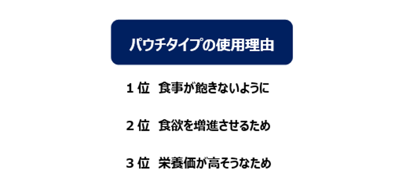 近年、「食べ飽きないように」や「食欲を増進させたい」などの理由から、パウチタイプのフードを使って愛犬に与える食事にアクセントを付ける方が増えています。また、与える食事においては「栄養バランスが良いこと」を重視する方も増えています。