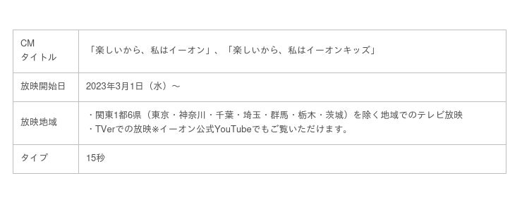 ■新CM YouTube動画「楽しいから、私はイーオン」:https://youtu.be/pemfLLFexBU