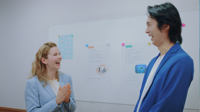 今回新しく公開となるCMは、「楽しいから、私はイーオン/イーオンキッズ」をキーフレーズに、この春から新しいことを始めたい人を応援するCMです。映像はイーオンスクールで撮影し、実際にレッスンを行っている外国人教師が出演をしている為、イーオンに通学をしてレッスンを受けているような疑似体験ができます。また生徒様視点で撮影をすることで、見ている方がクラスメイトや教師と楽しくコミュニケーションを取る様子がイメージしやすくなっています。映像を通して「英語で話すってこんなに楽しいんだ」と感じていただき、見ている方の挑戦したい気持ちを後押しします。