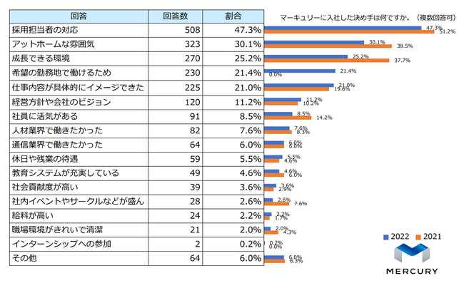 株式会社マーキュリーに新卒で入社した決め手は何ですか。(複数回答可)