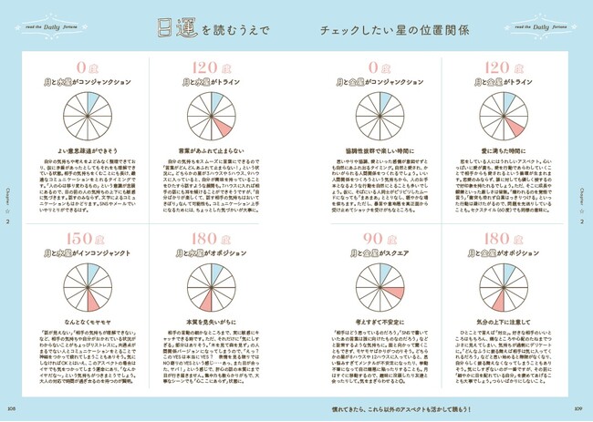 基本のサイン、星、ハウス、アスペクトの読み方を、具体的な意味内容をイメージしながらしっかりマスターでき、運気を先取りし、個性や意思を活かしながら運気をポジティブに変える方法がわかります。