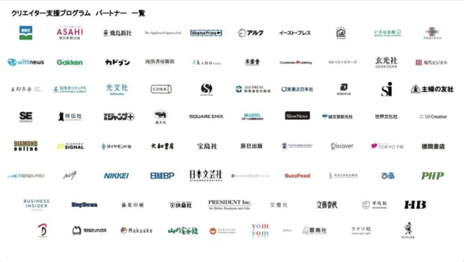 クリエイターが活躍する場を広げるために、 noteがパートナーと共に才能の開花を後押しするプログラム。noteで話題のクリエイターを定期的にパートナーへご紹介。関心を寄せたパートナーからのオファーをクリエイターへ届けます。2022年4月時点で78のメディアがパートナーとなっています。