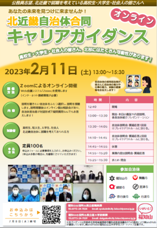 その一環として、北近畿全体の採用活性化のために本市が事務局として企画・運営し、自治体業務に関心がある全国の学生・社会人に向け、北近畿6市合同で2023年2月11日にオンラインで開催した「北近畿自治体キャリアガイダンス」のレポートをお届けします。