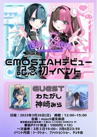 「彼氏に勉強させたいYouTube」でお馴染みのシイナナルミと、「オタクのお悩みを解決する全国のオタクの共感者」の地雷チャンで2023年3月1日に結成された"EMOSIAH"のデビュー記念初イベントの最新情報が解禁されました。