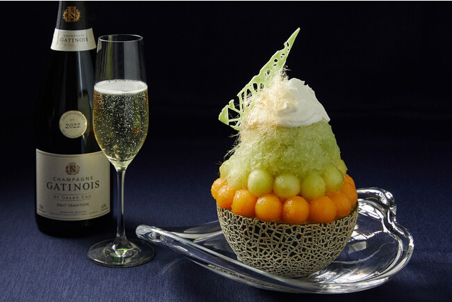 料金:2種のメロンの贅沢かき氷 7,000円(数量限定)、シャンパン1杯 1,200円~(いずれも税込)