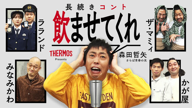 魔法びんのグローバル企業として、人と社会に快適で環境にもやさしいライフスタイルを提案するサーモス株式会社(本社:東京都港区、社長:片岡有二)は、2023年3月7日(火)より、さらば青春の光 森田哲矢さん、かが屋、ザ・マミィ、みなみかわ、ラランドの計8名の芸人が、1時間の長時間一発撮りコントにチャレンジする長続きコント「飲ませてくれ」を公式YouTubeチャンネル「どっぷりサーモスチャンネル」にて公開します。