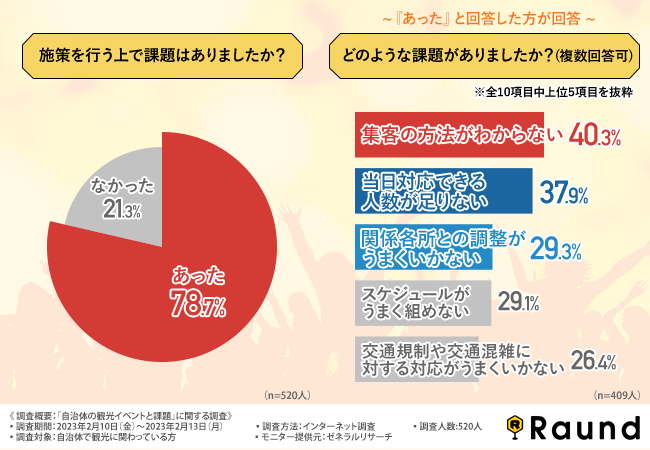 【課題ありと答えた関係者が7割以上】自治体の観光イベントにおける課題