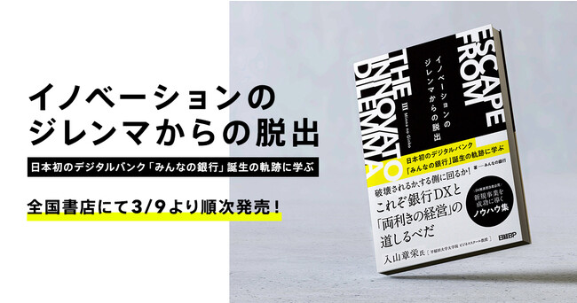 株式会社みんなの銀行(取締役頭取 永吉 健一、以下「みんなの銀行」)は、初の著書『イノベーションのジレンマからの脱出 日本初のデジタルバンク「みんなの銀行」誕生の軌跡に学ぶ』を、全国書店にて2023年3月9日より順次発売スタートすることを、記念日制定した本日「みん(3)な(7)の銀行の日」に合わせて発表します。