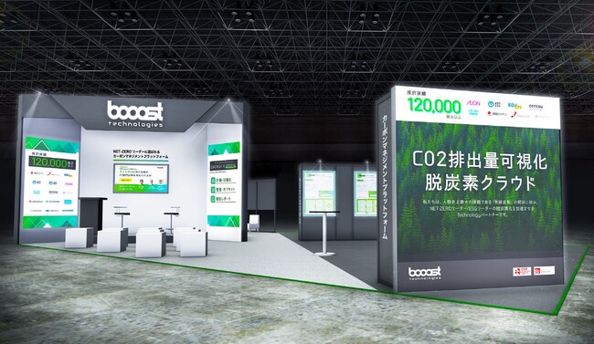 当社ブースでは、CO2排出量の見える化・カーボンオフセット・報告レポート等のGX(グリーン・トランスフォーメーション)を促進する「booost GX(旧 ENERGY X GREEN)」や、プライチェーン全体のCO2排出量の見える化を実現する「booost Supplier」について展示・パネル紹介する他、「booost GX」の実機でのデモもご覧いただけます。
